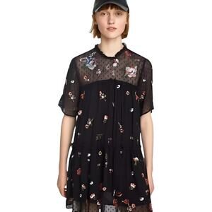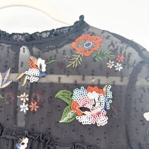 Zara Womens Whimsigoth Boho Sequin Embroidered Floral Mini Dress Size S Black
