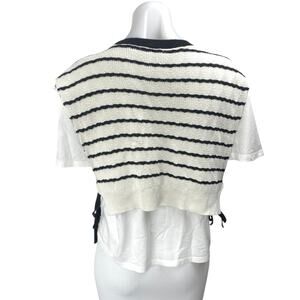 Zara Women's White Black Striped Overlay Short Sleeve Swaeter Vest Top Size M