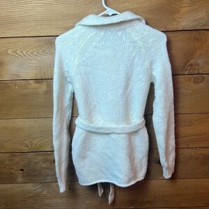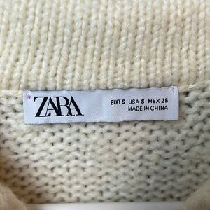 Zara Women's White Cream Sweater Belt Button Up Sm layering casual Evening knit