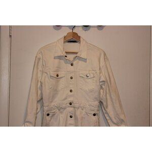 Zara Womens White Denim Shirt Dress With Button Front & Adjustable Waist - Size