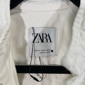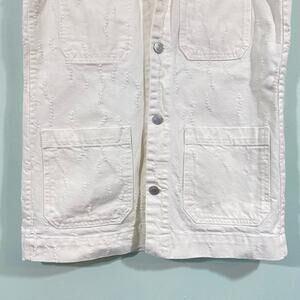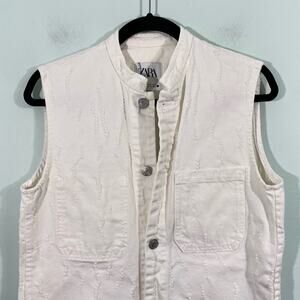 Zara Women's White Distressed Long Length Button Up Denim Vest Size S