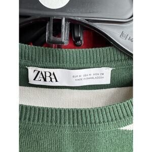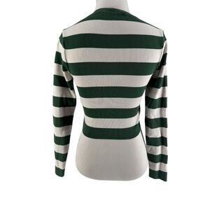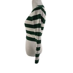 Zara Women's White & Green Striped Long Sleeve Crop Jumper Sweater Size Medium