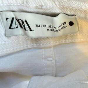 Zara Women's White High Waist Raw Hem Wide Leg Jeans denim pants 26/4