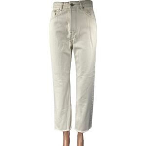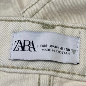 Zara Women's White High Waisted Cropped Raw Hem Wide Leg Denim Jeans Size 4
