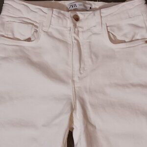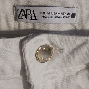 Keywords: Zara jeans, high-rise jeans, white denim, cropped flare, raw hem jeans, size 4 jeans, women's fashion, casual style, stylish jeans, modern look, trendy denim, comfortable fit, made in Bangladesh