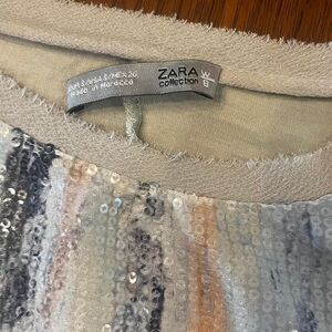 ✨ Shimmery Zara going-out top with sequins all over + abstract brush-stroke stripes. Perfect for nights out, parties, or layering with jeans & heels. Size Medium