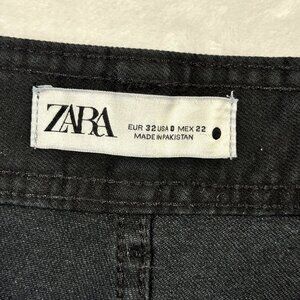 Crafted from durable cotton, these wide-leg jeans by Zara feature a modern raw hem design and a sleek black finish, ideal for versatile styling.