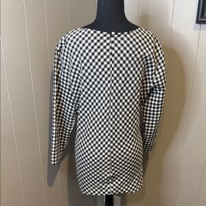 Zara Women’s XL Monochrome Checkered Blouse Front Tie Waist