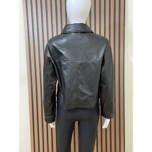 The Zara Women's XS Black Leather Military Jacket is a stylish and versatile outerwear piece perfect for various occasions including travel, parties, casual outings, and business meetings. Made from high-quality leather with a button closure, this short jacket features a collared neckline, pockets, and a breathable design ideal for the winter, fall, and spring seasons. With a military-inspired style, this jacket is a classic and preppy addition to any wardrobe, blending elements of college and outdoor aesthetics. Easy to care for with machine washable instructions, this Zara jacket is a timeless choice for the modern woman.