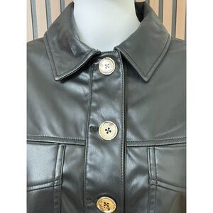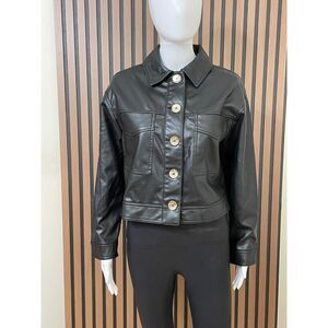 Zara Women's XS Black Jacket Faux Leather Moto Biker Cropped Outdoor Button