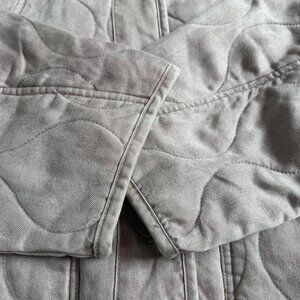 Only worn once! Beautiful condition, just one tiny mark on the sleeve (see photo). Very stylish top layer and intriguing dusty purple color! Cozy, boxy fit. I'm usually a Small and it fits me well.