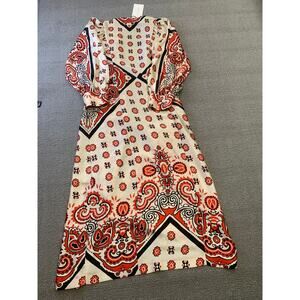 Zara Women's XS White Red Black Patterned Long Sleeve Dress