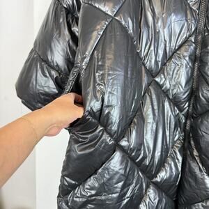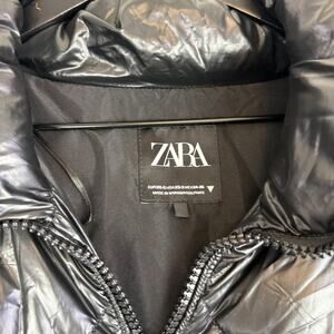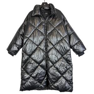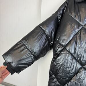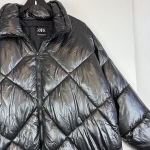 Zara Womens XS-S Oversized Quilted Shiny Black Puffer Jacket Polyester