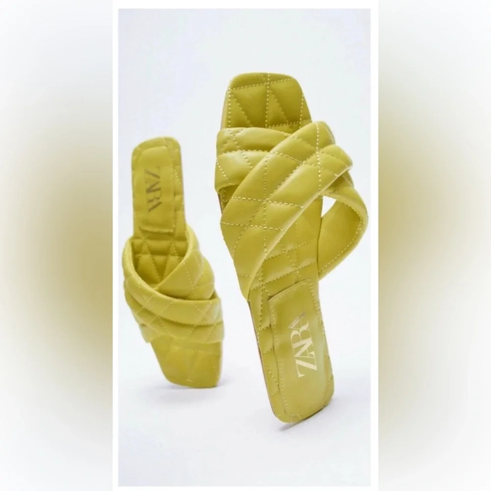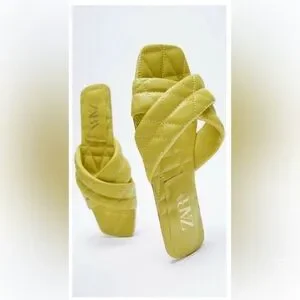 Chic yellow quilted sandals by Zara. Perfect for any occasion.