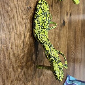 Zara Women’s Yellow and Black Snakeskin Print Heels