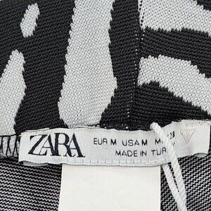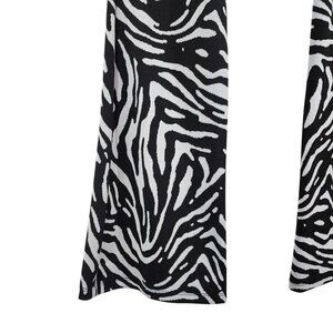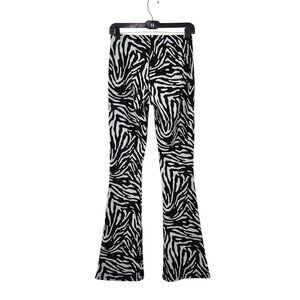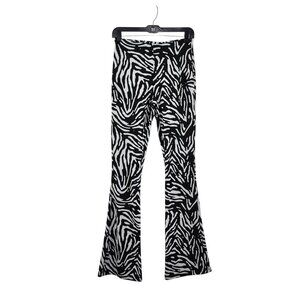 Zara Women's Zebra Print Flared Jacquard Trouser Pants White Black Sz M