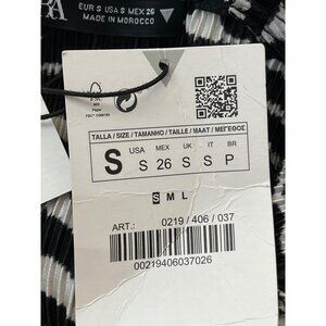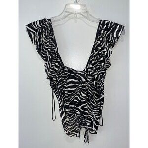 Zara Womens Zebra Print Ruched Ruffle Sleeve Top S Black & White Polyester NWT