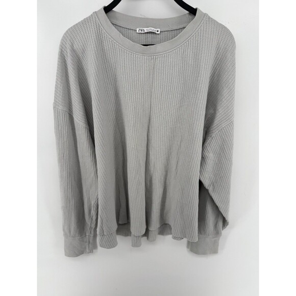 Zara Womens sz L Gray Long Sleeve Ribbed Thermal Top