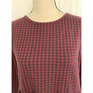 Zara Womens Burgundy Red Black Checked Long Sleeve Sweater Top Large