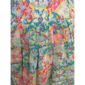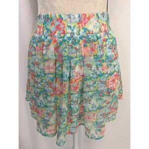 Zara Womens Floral Blue Yellow Pink Mini Flare Skirt Xs