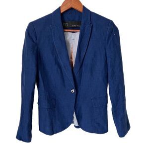 Zara Women's Linen Cobalt Blue One Button Blazer Suit Jacket