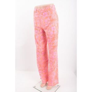 Zara Womens Linen Blend Trousers Pants XS Orange Pink Paisley 8042/010 NWT