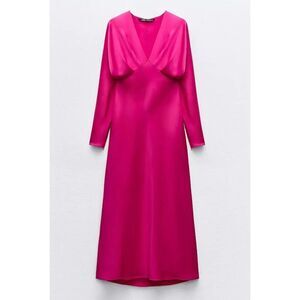 Zara Womens Midi Dress Size S Raspberry Pink Satin Effect Cocktail 2298/067 NWT