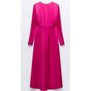 Zara Womens Dress Size S Raspberry Pink Satin Effect Midi Cocktail 2298/067 NWT