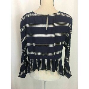 Zara Womens Navy Blue White Striped Long Sleeve Top 100% Viscose Small