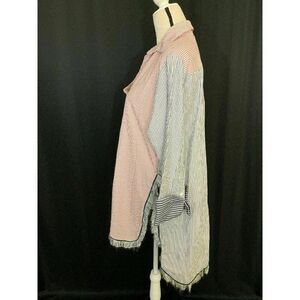 Zara Womens Navy Blue White Red Striped Long Sleeve Top Button Down Small