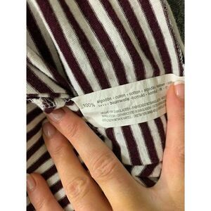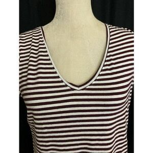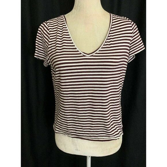 Zara Womens Purple Plum White Striped Short Sleeve Top T Shirt V Neck Small