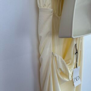 Zara Women’s Rare Blogger Fave Pale Butter Yellow Cream Jersey Halter Ruched Max