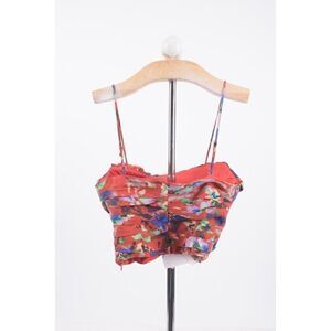 Zara Womens Red Floral Print Ruffled Corset Crop Top Size XS 9159/705 NWT