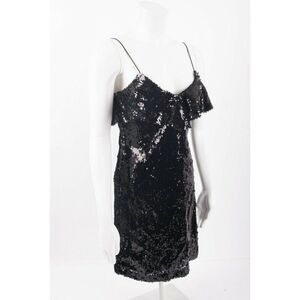 Zara Womens Sequin Mini Dress S Black Ruffle