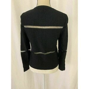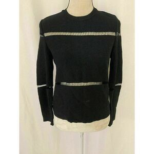Zara Womens Solid Black Long Sleeve Mesh Crew Neck Sweater Top Xs