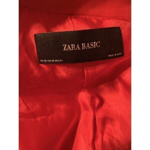 The Zara Women's Solid Red Long Sleeve Jacket in size XS is a stylish and versatile piece for any wardrobe. Made from a Viscose Blend material, this basic jacket features a solid red color and long sleeves, perfect for adding a pop of color to any outfit. The jacket is designed with a regular fit and tailored for women, making it a chic and comfortable option for various occasions. Perfect for layering and adding a bold statement to your look, this Zara jacket is a fashionable choice for any woman.