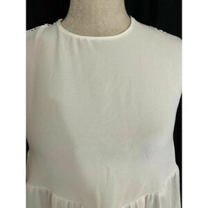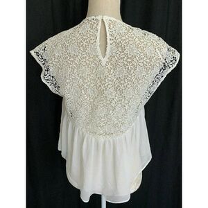 Zara Womens Solid White Lace Crew Neck Sheer Tank Top Xs. Condition is Pre-owned. Shipped with USPS First Class Package. Length 21, bust 34, waist 36, open hips. Measurements in inches. Smoke and pet free home. Fast shipping. Light mark as shown in photo.