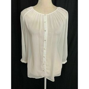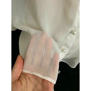 Zara Womens Solid White Sheer Long Sleeve Button Down Top Blouse Xs