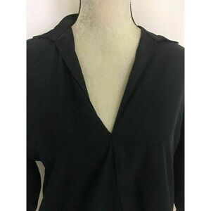 Zara Womens Solid Navy Blue V Neck Long Sleeve Work Career Top Xs