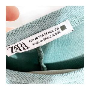 Zara Women's Teal Short Sleeve Faux Suede Shift Dress With Pockets Size Medium