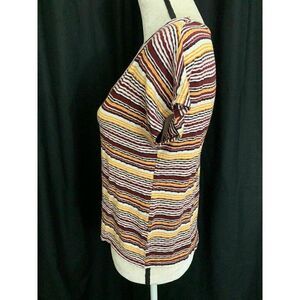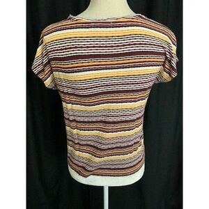 Zara Womens Yellow White Burgundy Striped V Neck Short Sleeve Top T Shirt Small