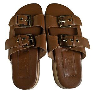 Zara Wood Platform Leather Buckle Slide Size 38 EUC