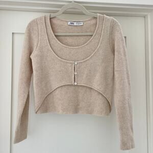Zara Wool Blend Buttoned Sweater Ecru Medium
