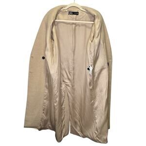 Zara Wool Blend Double Breasted Classic Straight Cut Beige Coat Small