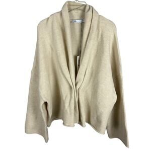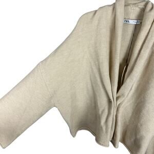 Zara Wool Blend Long Sleeve Gathered Front Minimalist Cardigan Sweater S