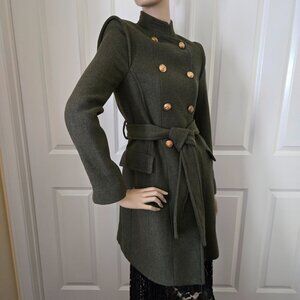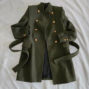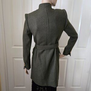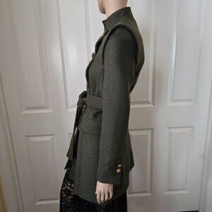 Zara Wool Blend Military Belted Coat SZ XS Army Green