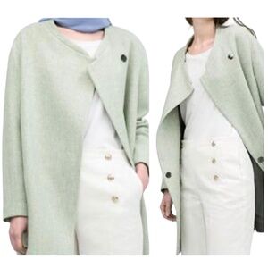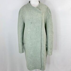 Zara Wool Blend Snap Closure Straight Cut Coat Seafoam Green Size Medium