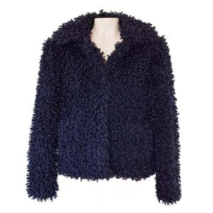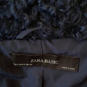 Zara Wool Cropped Navy Teddy Jacket Coat