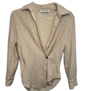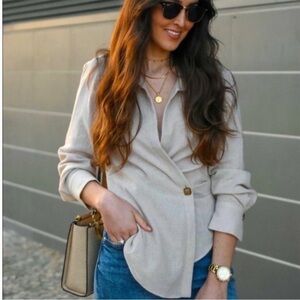 Zara Wool Double Breasted Tie Waist Shirt Asymmetrical Hem Sz M