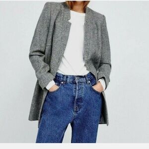 Zara Wool Frock Coat XS Gray Marl Inverted Lapel Winter Fall Overcoat Jacket